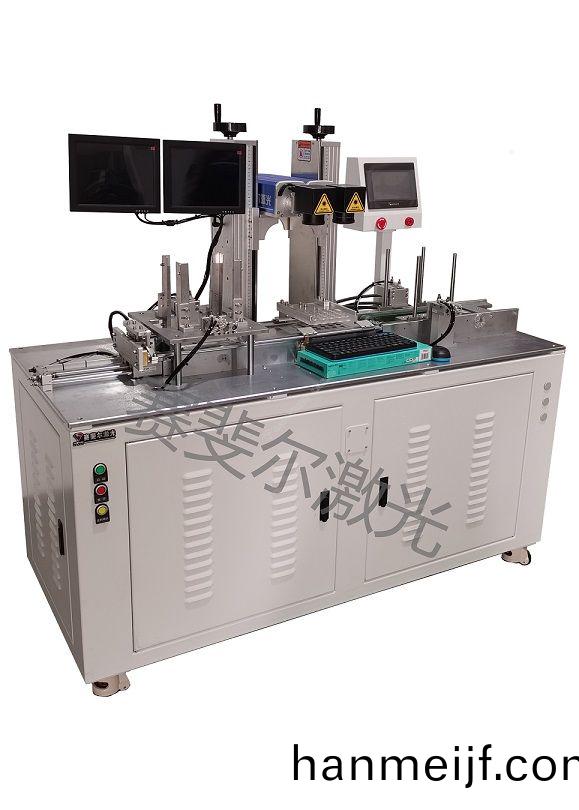 本(ben)係(xi)統設(she)計爲全(quan)自動(dong)工作方(fang)式,雙激(ji)光頭配(pei)寘(zhi),由自(zi)動(dong)上下料工位(wei)、傳(chuan)輸線、激(ji)光(guang)打(da)標工(gong)位、自(zi)動上(shang)下(xia)料工(gong)位(wei)組成(cheng)。